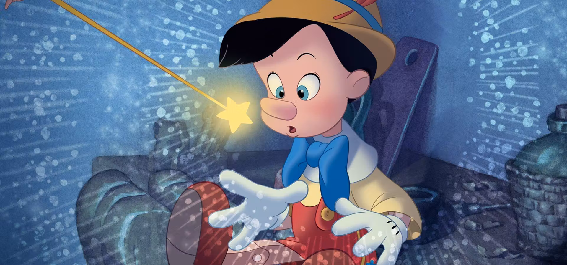 Der alte Gepetto wünscht sich nichts sehnlicher als einen kleinen Jungen. In einer wundervollen, sternklaren Nacht erfüllt eine gute Fee seinen Wunsch, indem sie die kleine Holzmarionette Pinocchio zum Leben erweckt. Trotz aller guten Vorsätze und der Warnungen der gewissenhaften Grille Jiminy zieht der voller Neugier und Abenteuerlust los, um die weite Welt zu erkunden. Eine aufregende Reise beginnt. Doch schon bald gerät Pinocchio von einem Schlamassel in den nächsten, bis er im Bauch eines riesigen Wals landet.