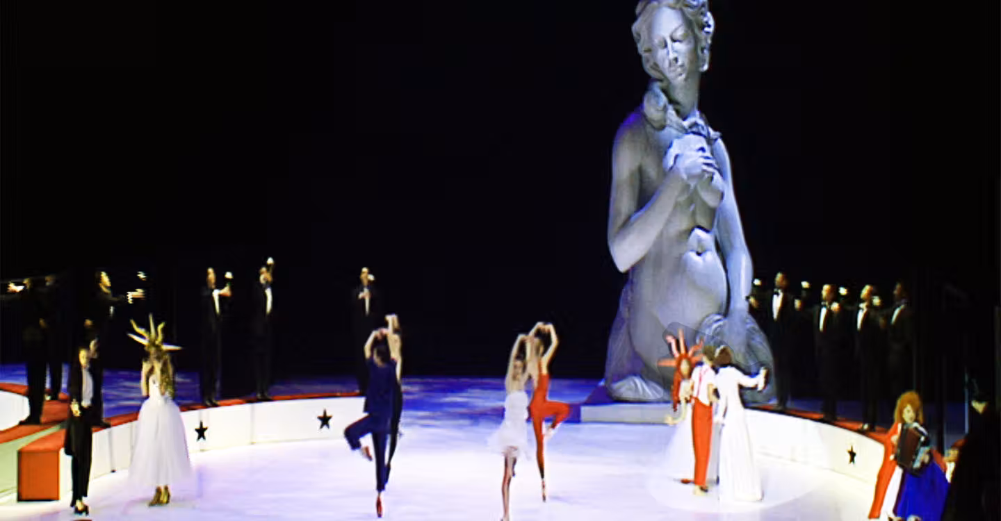 The showman of 20th century choreography, Maurice Béjart, stages his distinctive rendering of the beloved Christmas ballet "The Nutcracker" using Tchaikovsky's entire score, supplemented with waltz and accordion music performed onstage by the renowned Yvette Horner. Béjart uses the original St. Petersburg tale as a launching point from which to evoke the recollections and feelings of his life's journey from childhood.